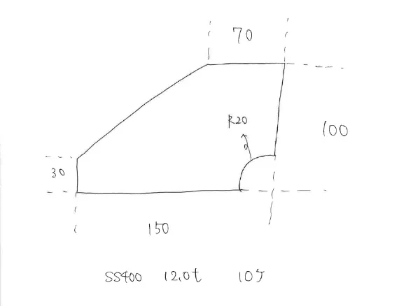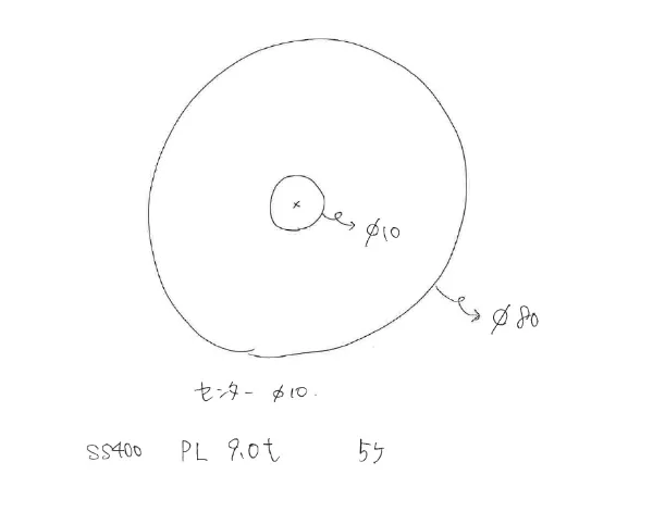 長方形や円の組み合わせ、文字抜き等のシンプルな加工の場合は、長さ・直径・フォント等の要望を下記のように簡単に手書きして頂ければ、加工対応致します。